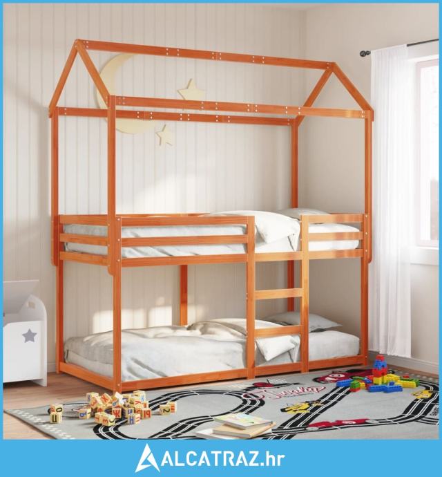 Krevet na kat s krovom voštano smeđi 75x190 cm masivna borovina - NOVO