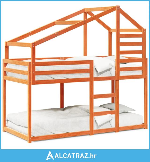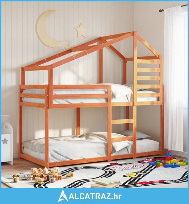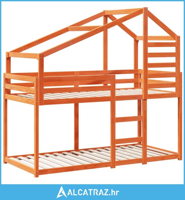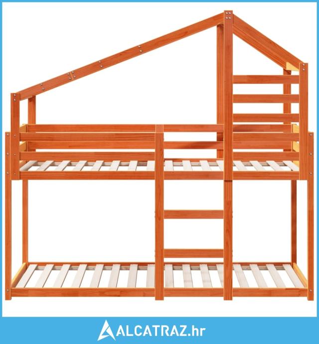 Krevet na kat s krovom voštano smeđi 80x200 cm masivna borovina - NOVO