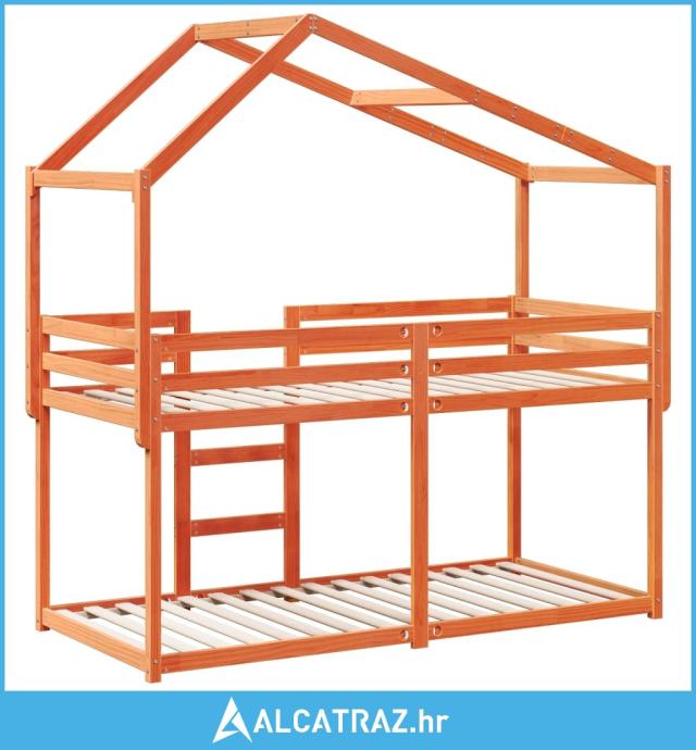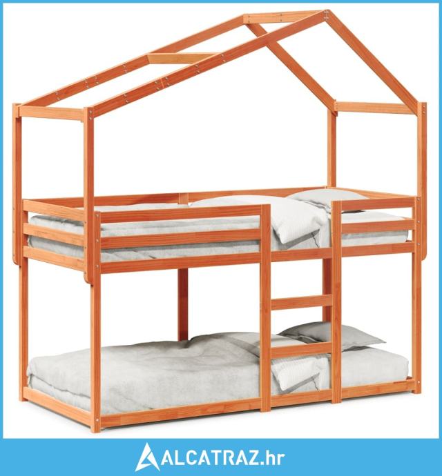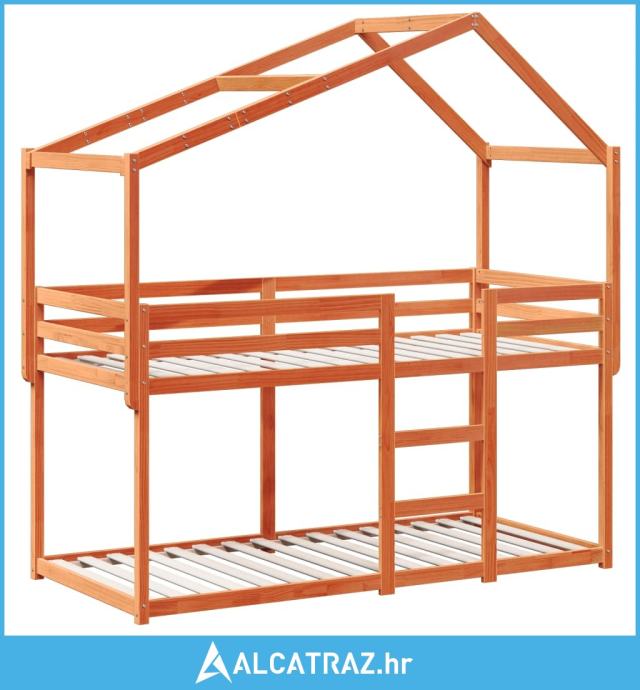 Krevet na kat s krovom voštano smeđi 90x200 cm masivna borovina - NOVO