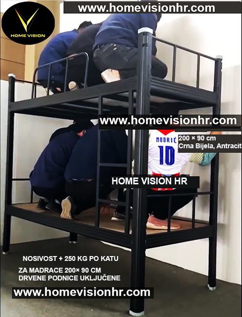 200 × 90 × 180 Cm - Max nosivost 500 kg (Cca 250 kg po katu) Iznimno velika nosivost ! Težina skroz sklopljenog kreveta : 80 kg
