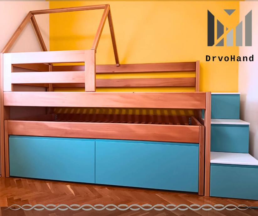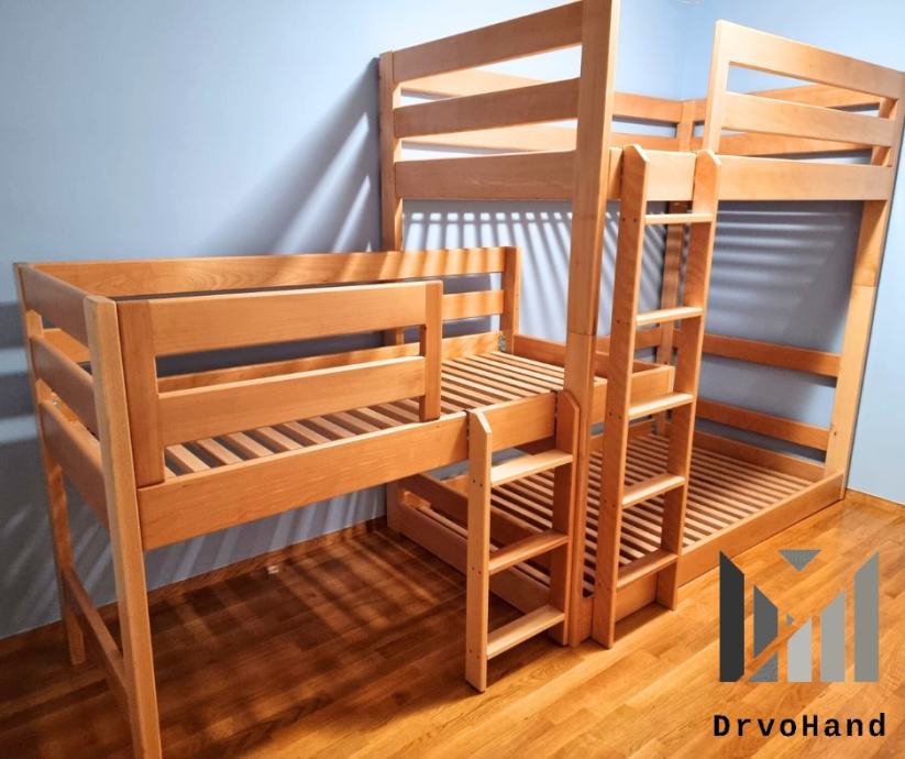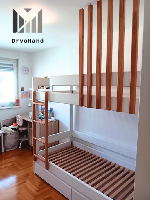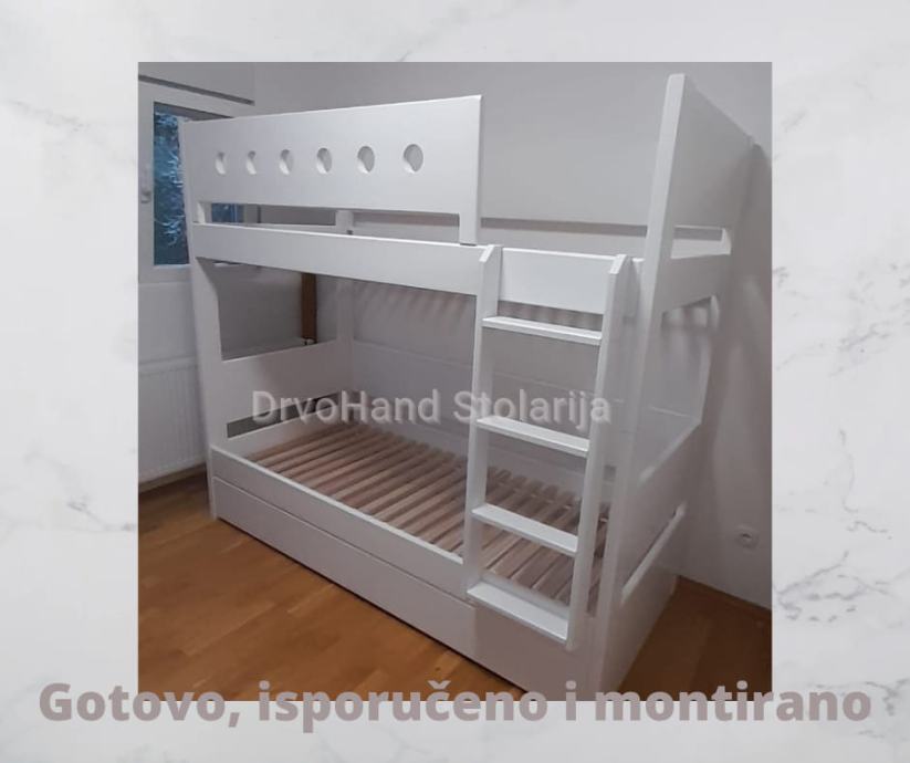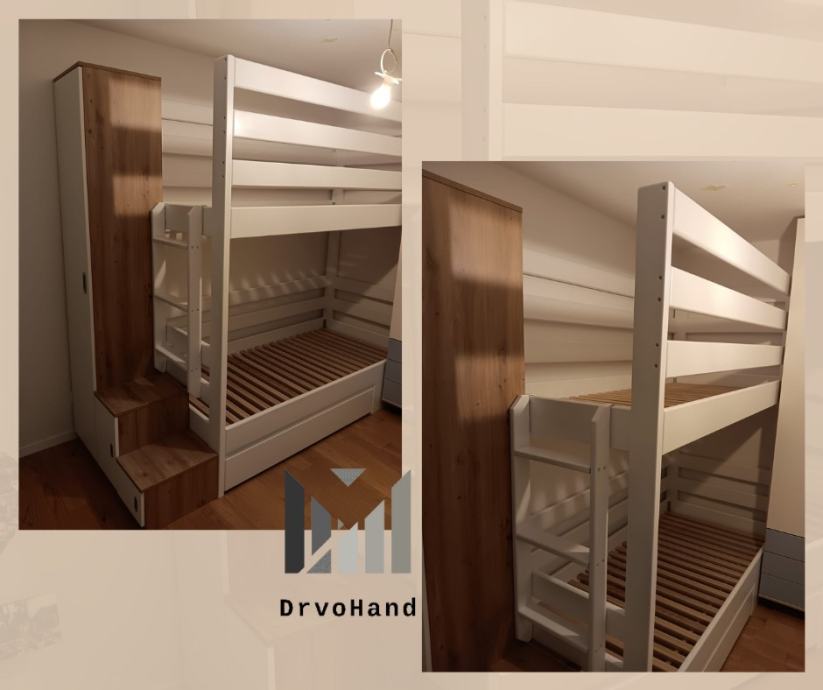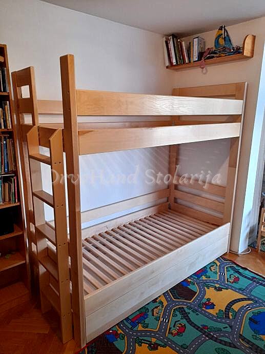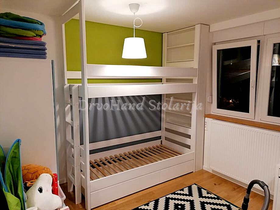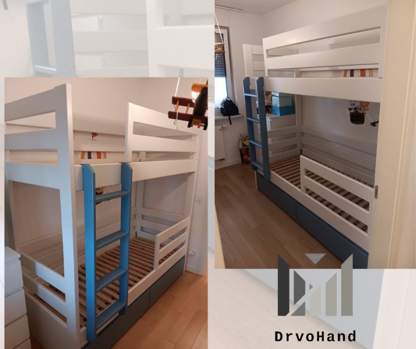 Izrađujem krevete i u mjerama po želji kupaca kao i visinu između gornjeg i donjeg kreveta koja je u startu oko 90 cm (ovisno o debljini madraca)