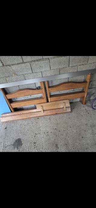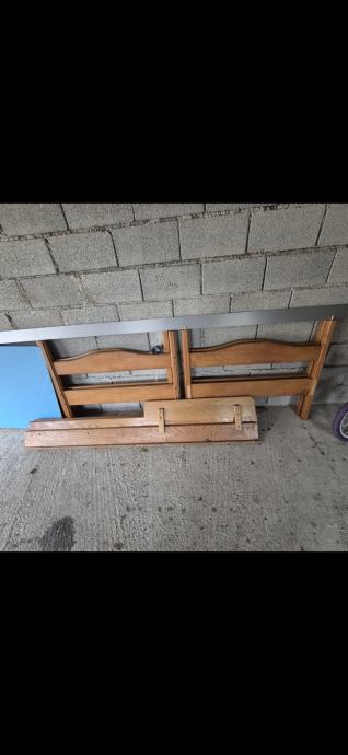 Krevet na kat 90 x 200 cm od pune hrastovine sa zaštitom na gornjem krevetu od pada i ljestvama. Cijena 180 eura
