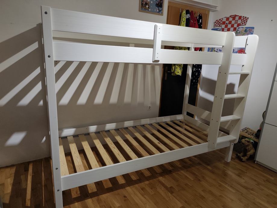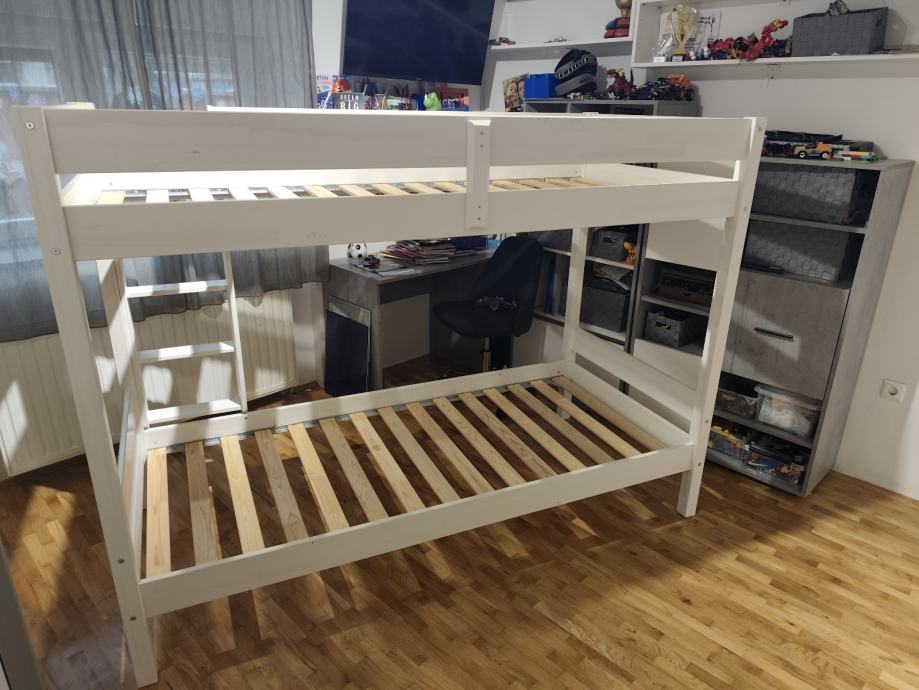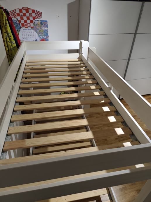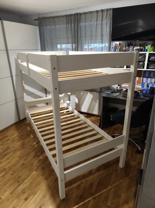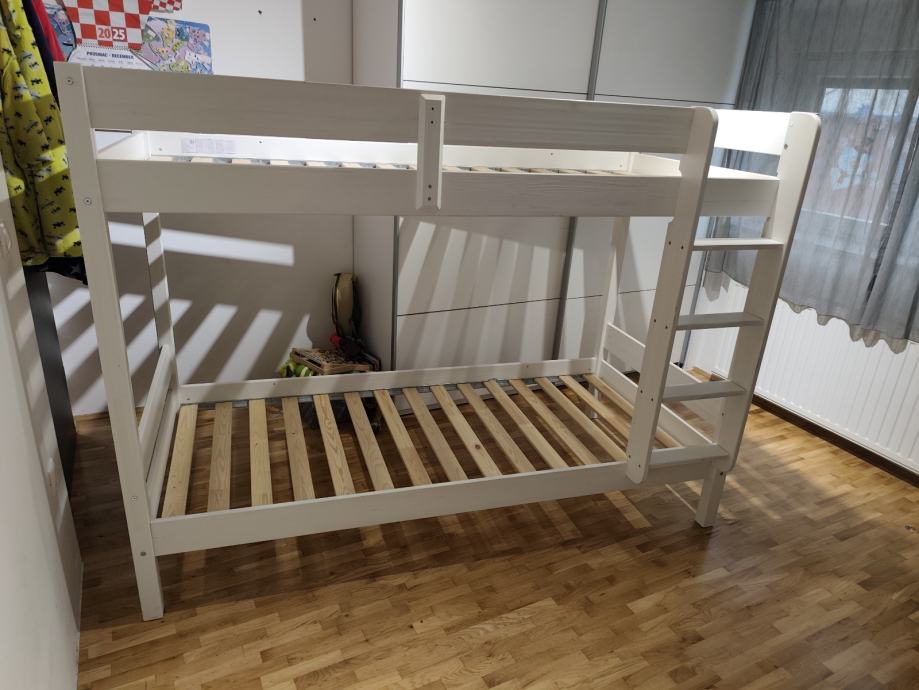 Prodajem drveni krevet na kat 2x90x200 sa jednim madracem. Krevet u vrlo dobrom stanju, korišten dvije godine. Dodatne informacije na upit.