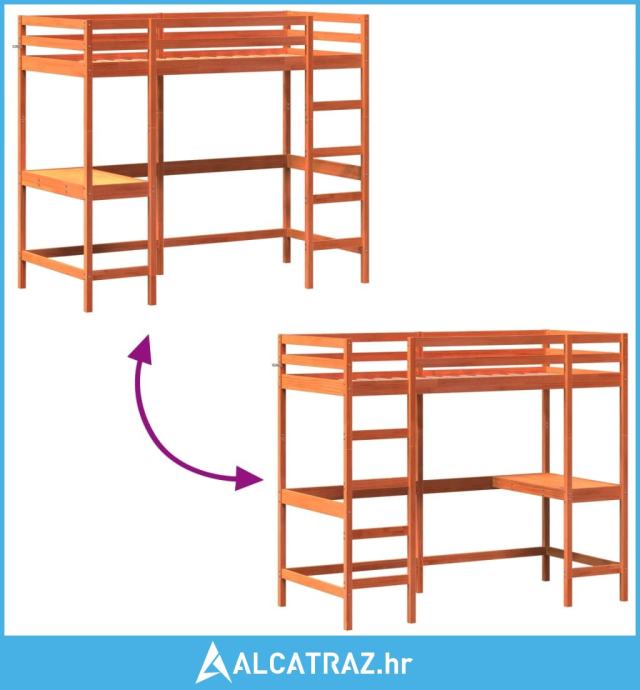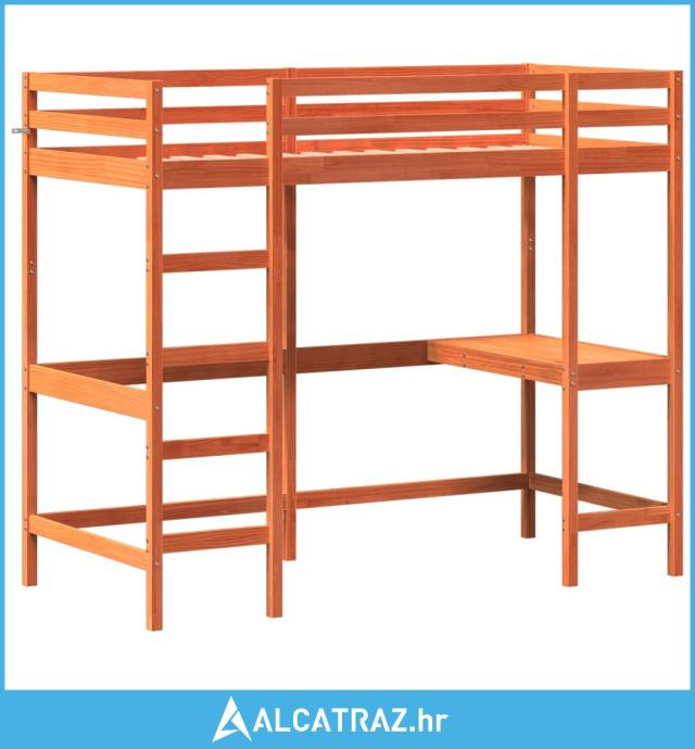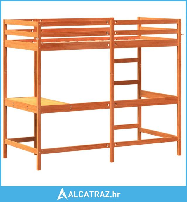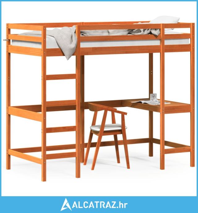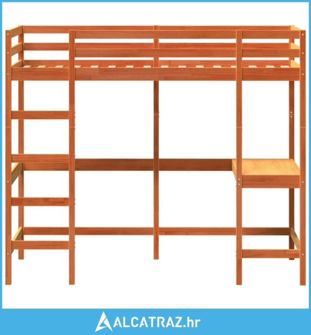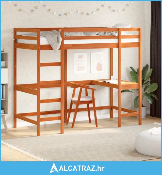 Krevet na kat s radnim stolom voštano smeđi 90x190 cm borovina - NOVO