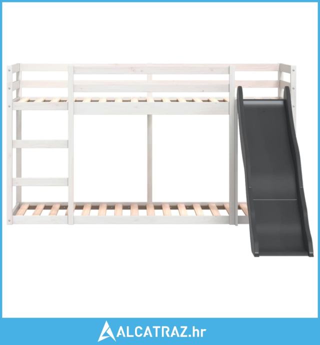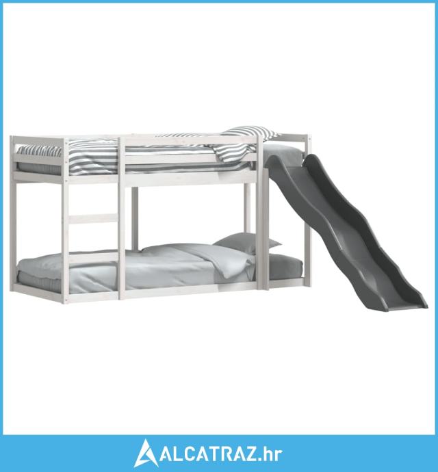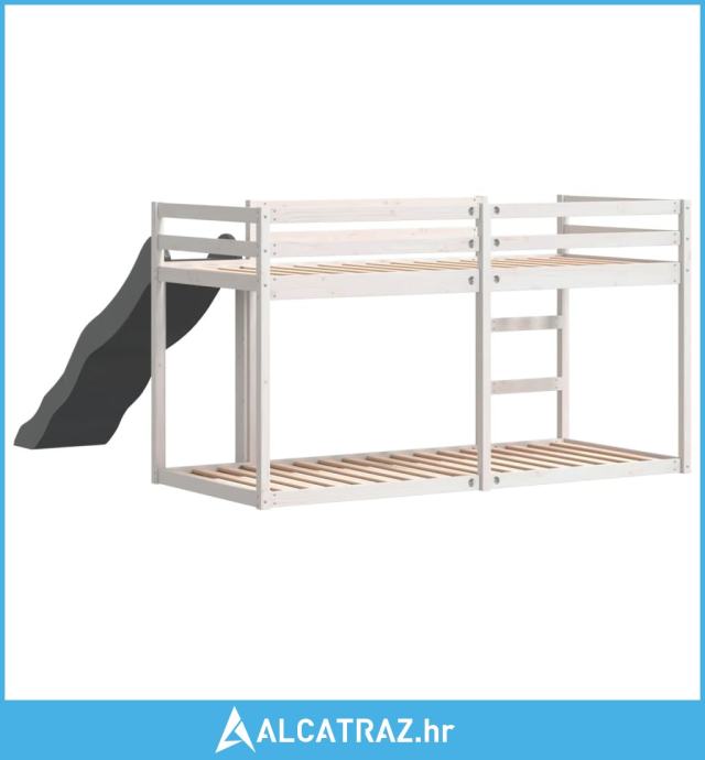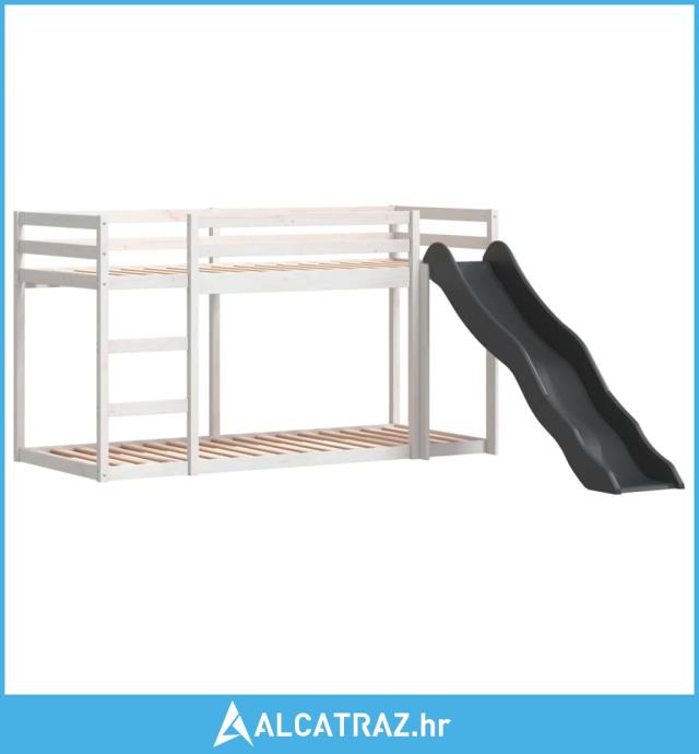 Krevet na kat s toboganom i ljestvama bijeli 80x200 cm borovina - NOVO