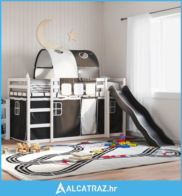 Krevet na kat s toboganom i zavjesama bijelo-crni 90 x 190 cm - NOVO