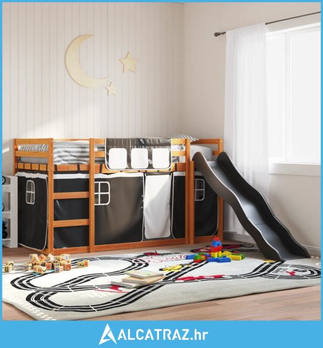 Krevet na kat s toboganom i zavjesama bijelo-crni 90 x 200 cm - NOVO