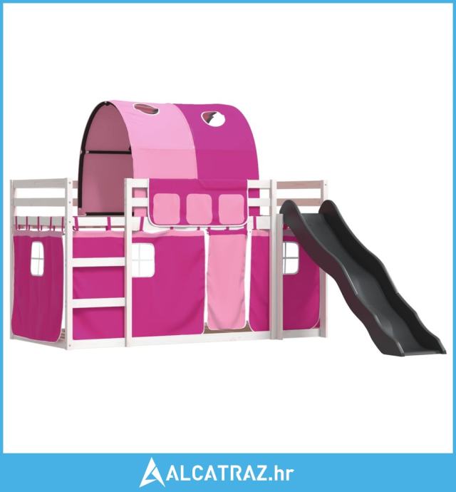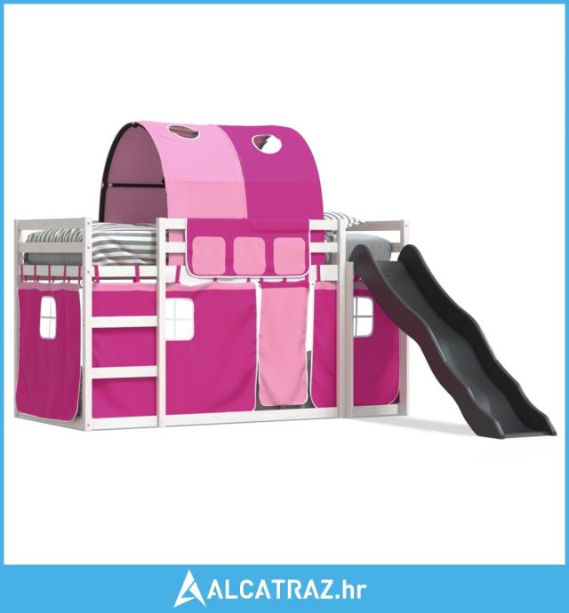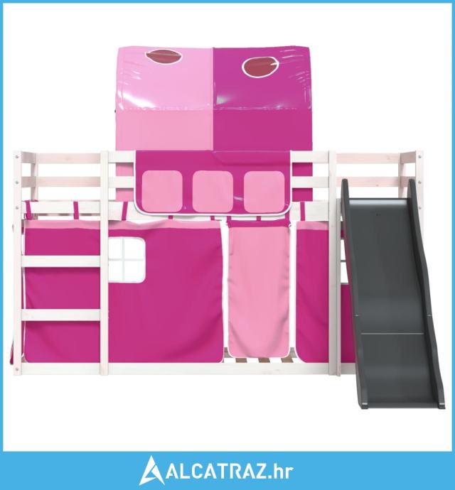 Krevet na kat s toboganom i zavjesama ružičasti 80 x 200 cm - NOVO