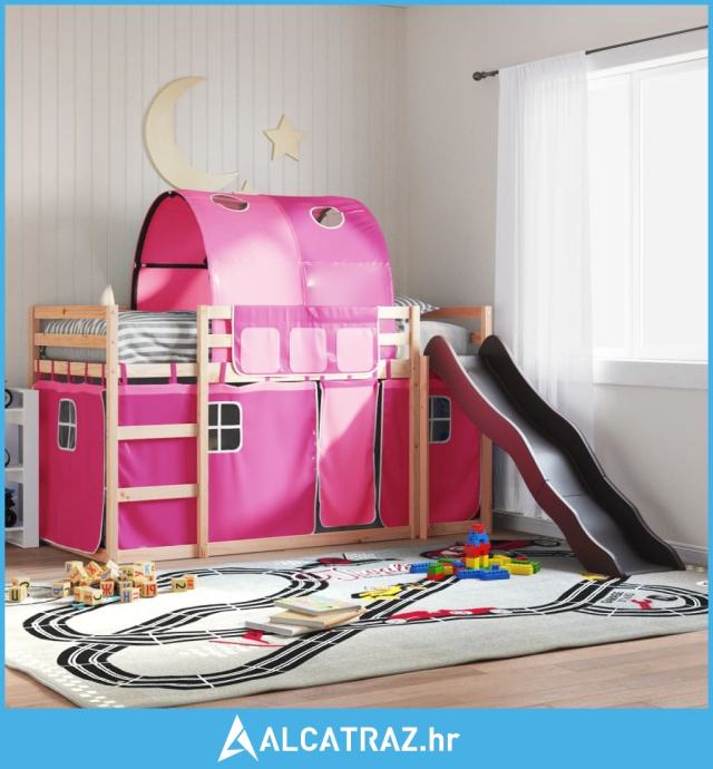 Krevet na kat s toboganom i zavjesama ružičasti 90 x 190 cm - NOVO