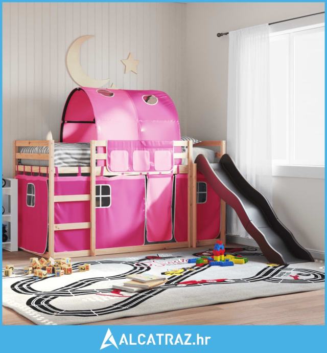 Krevet na kat s toboganom i zavjesama ružičasti 90 x 200 cm - NOVO