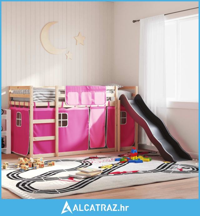 Krevet na kat s toboganom i zavjesama ružičasti 90 x 200 cm - NOVO
