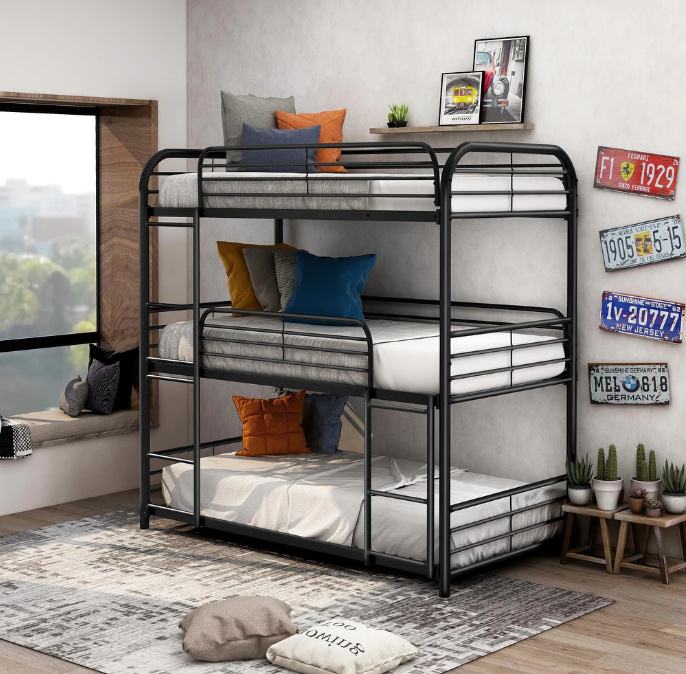 Robusna konstrukcija: Izrađen od izdržljivog metala, ovaj krevet je čvrst i siguran za svakodnevnu upotrebu. Svaki krevet ima svoj madracni okvir i ljestve za jednostavan pristup gornjim krevetima.