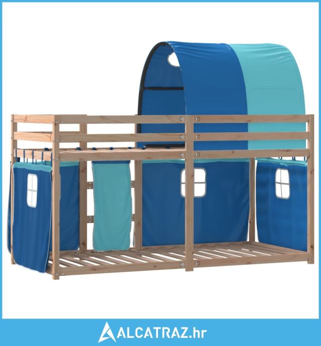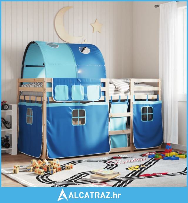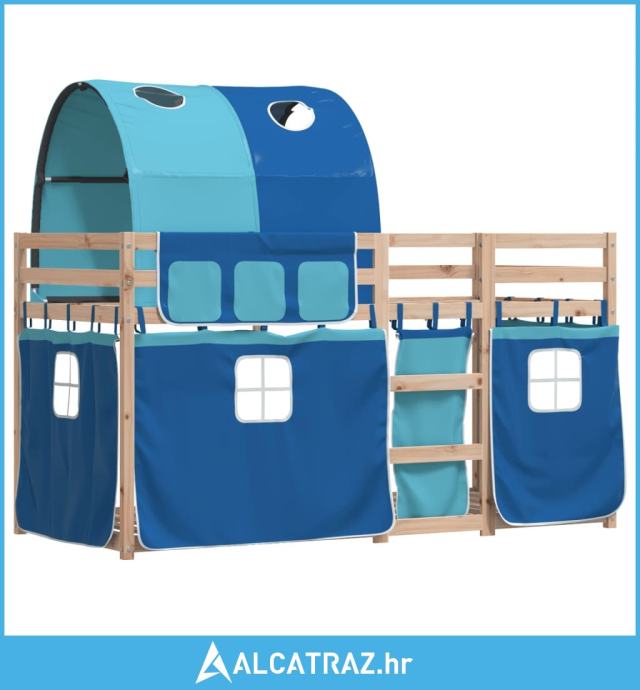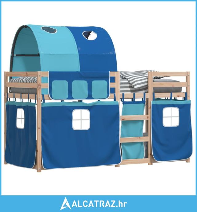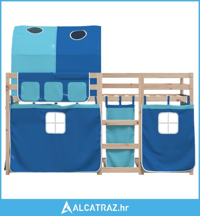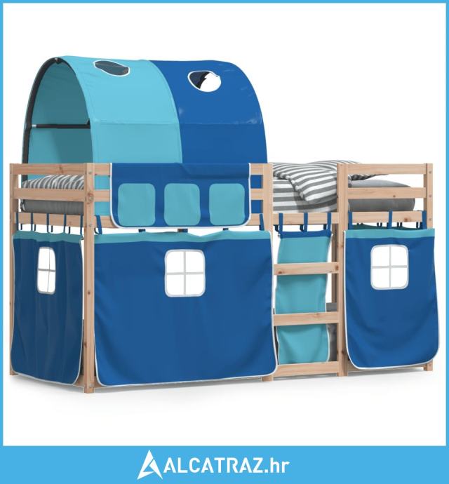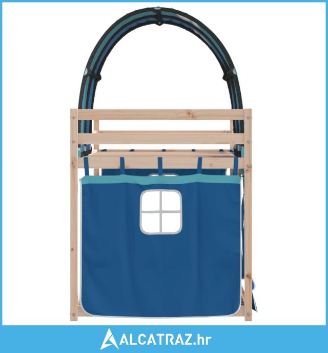 Krevet na kat sa zavjesama plavi 75x190 cm od masivne borovine - NOVO