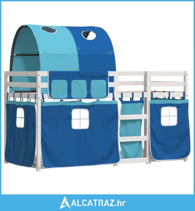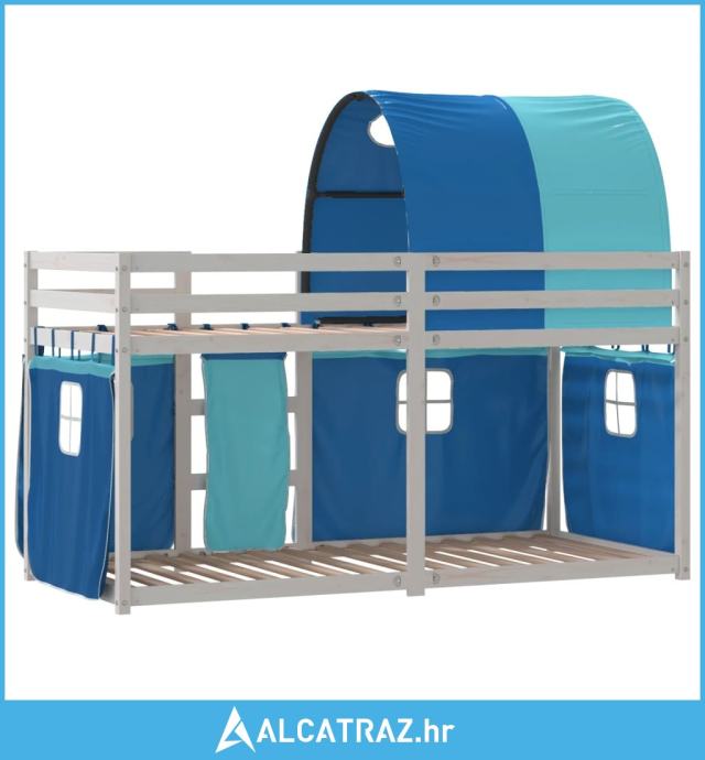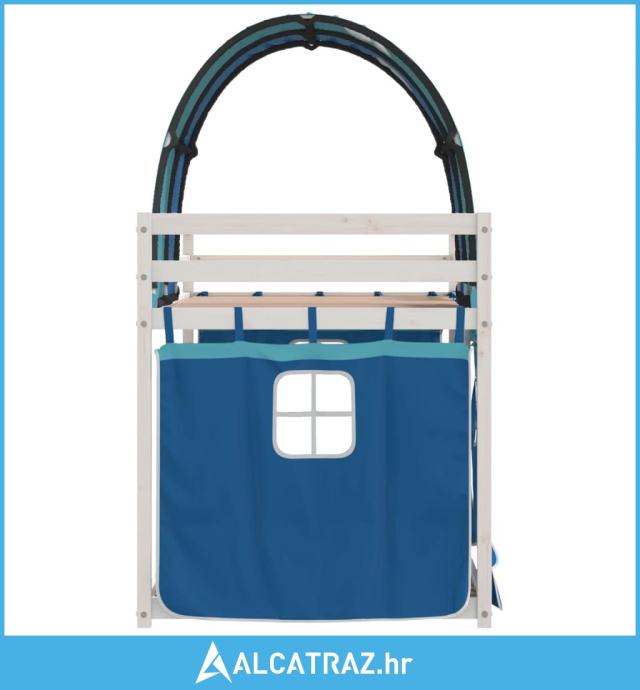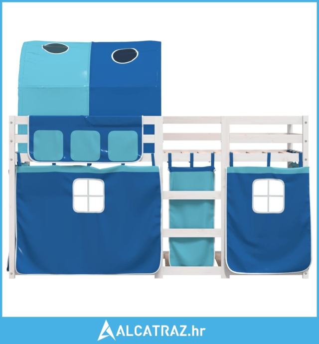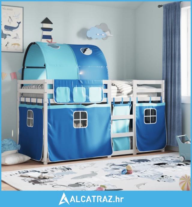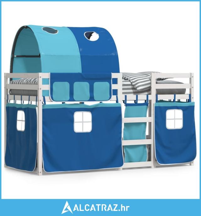 Krevet na kat sa zavjesama plavi 75x190 cm od masivne borovine - NOVO