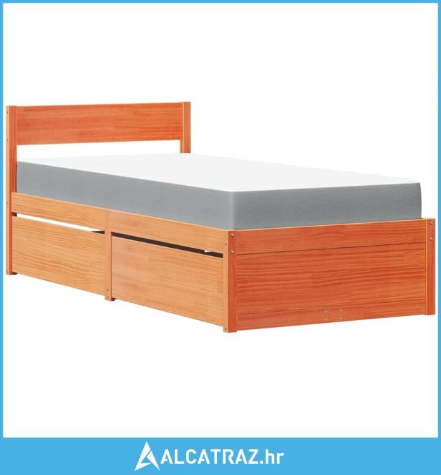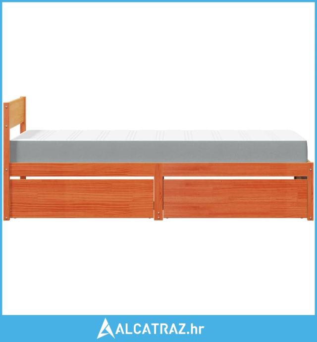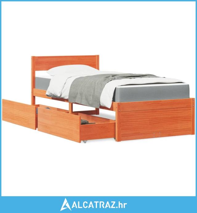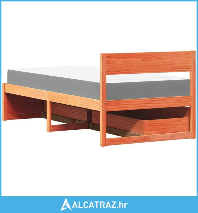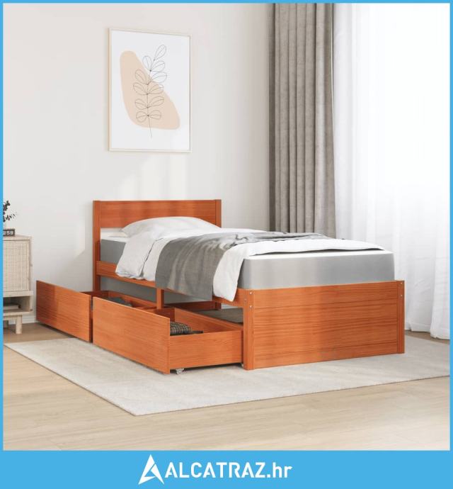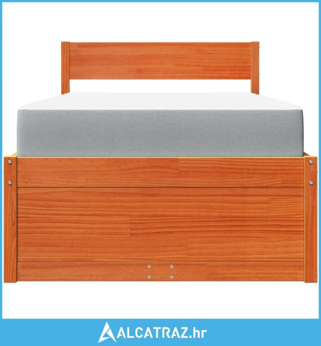 Krevet s ladicama i madracem voštano smeđi 100x200 cm borovina - NOVO