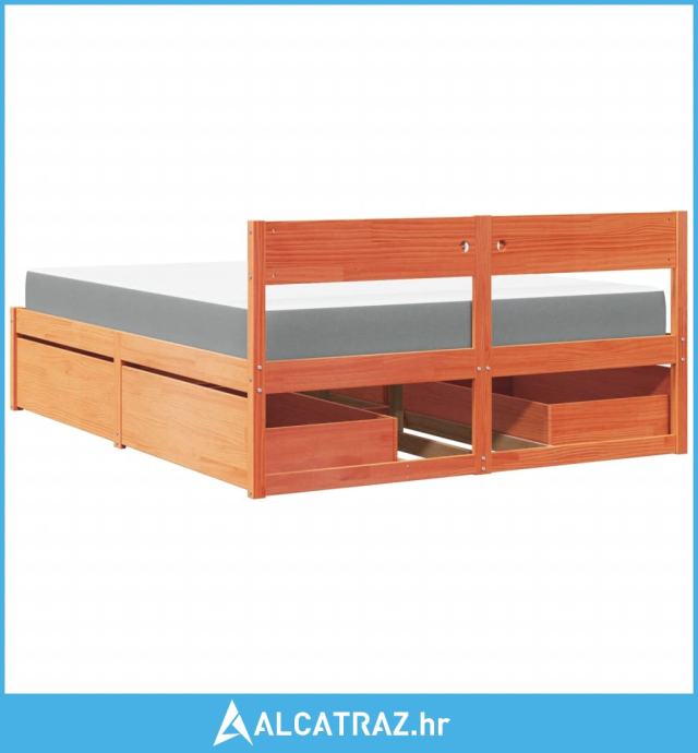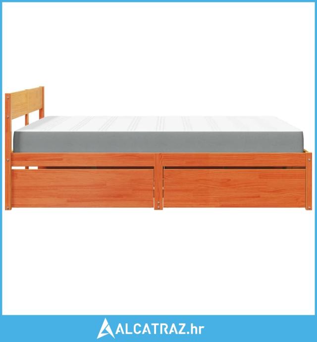 Krevet s ladicama i madracem voštano smeđi 160x200 cm borovina - NOVO