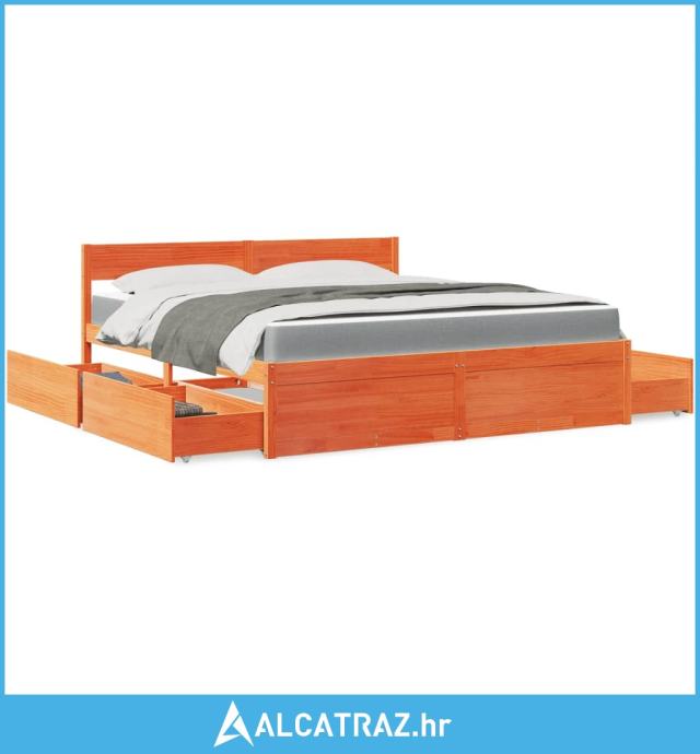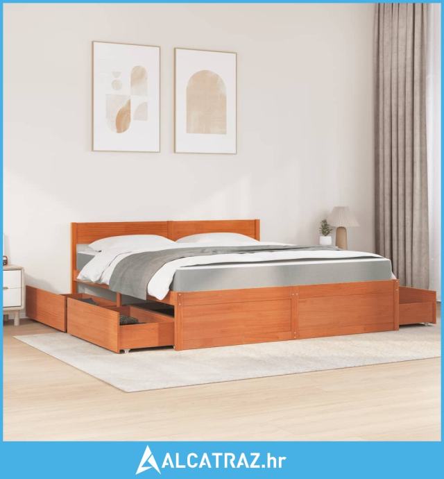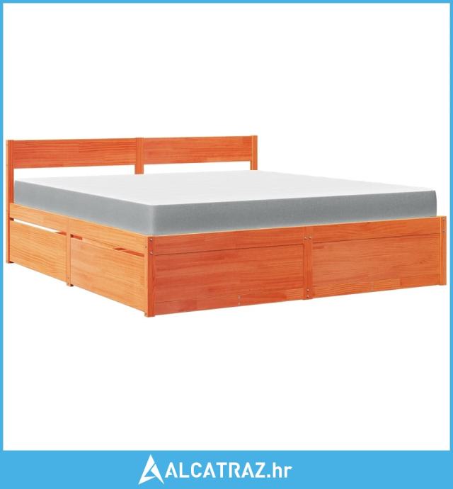 Krevet s ladicama i madracem voštano smeđi 180x200 cm borovina - NOVO