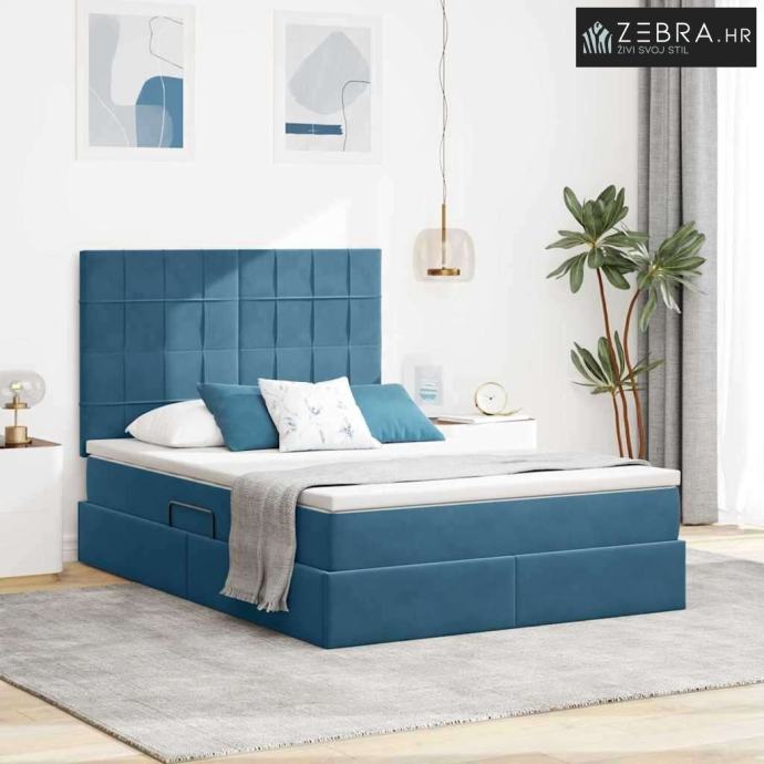 Visokokvalitetni materijali: Izrađen od vrhunskog baršuna za luksuzan osjećaj i dugotrajnu izdržljivost. Metalni okvir pruža čvrstu potporu, osiguravajući stabilnost i dugovječnost. Madrac s pjenom i pocket oprugama nudi udobnost i pouzdanu potporu za neprekidan san. LED poboljšanja: Opremljen modernim LED trakama koje nude ambijentalno osvjetljenje uz mogućnost podešavanja daljinskim upravljačem za prilagodljivo svjetlo. Osvjetljenje je na USB napajanje, lako ga je održavati i štedi energiju. Pametna rješenja za pohranu: Krevet ima hidraulični mehanizam podizanja koji otkriva obilje prostora ispod. Ova opcija maksimizira prostor u sobi i održava stvari organiziranim, savršeno za manje spavaće sobe ili stanove gdje je svaki centimetar važan. Ergonomski dizajn: Madrac je dizajniran s umjerenom čvrstoćom, prilagođava se različitim pozicijama spavanja, pružajući ravnotežnu udobnost. Naslon kombinira stil i potporu, što ga čini idealnim za čitanje ili opuštanje prije spavanja. Suvremeni stil: Elegantni crni okvir s umjetnom kožom na naslonu dodaje dašak elegancije modernom dekoru, stvarajući mirnu i elegantnu spavaću atmosferu. Boja: Tamno plava