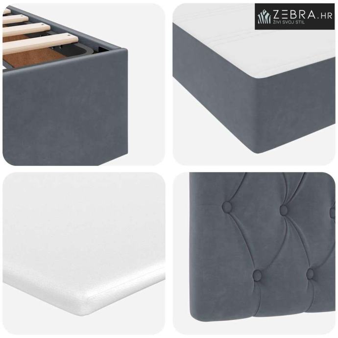Materijali: Krevet koristi kvalitetan baršun koji daje ugodan osjećaj i lijep izgled. Ovaj izbor ne samo da dodaje vizualnu privlačnost nego i udobnost, stvarajući luksuznu atmosferu. Baršun je odabran zbog svoje mekoće, pružajući ti udobno mjesto za opuštanje nakon napornog dana.