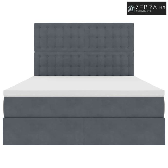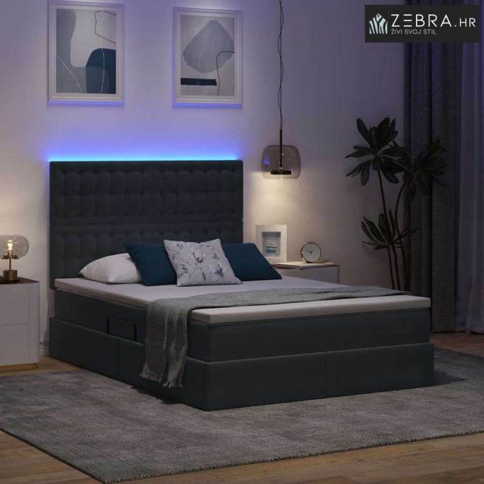 Visokokvalitetni materijali: Izrađen od vrhunskog baršuna za luksuzan osjećaj i dugotrajnu izdržljivost. Metalni okvir pruža čvrstu potporu, osiguravajući stabilnost i dugovječnost. Madrac s pjenom i pocket oprugama nudi udobnost i pouzdanu potporu za neprekidan san. LED poboljšanja: Opremljen modernim LED trakama koje nude ambijentalno osvjetljenje uz mogućnost podešavanja daljinskim upravljačem za prilagodljivo svjetlo. Osvjetljenje je na USB napajanje, lako ga je održavati i štedi energiju. Pametna rješenja za pohranu: Krevet ima hidraulični mehanizam podizanja koji otkriva obilje prostora ispod. Ova opcija maksimizira prostor u sobi i održava stvari organiziranim, savršeno za manje spavaće sobe ili stanove gdje je svaki centimetar važan. Ergonomski dizajn: Madrac je dizajniran s umjerenom čvrstoćom, prilagođava se različitim pozicijama spavanja, pružajući ravnotežnu udobnost. Naslon kombinira stil i potporu, što ga čini idealnim za čitanje ili opuštanje prije spavanja. Suvremeni stil: Elegantni crni okvir s umjetnom kožom na naslonu dodaje dašak elegancije modernom dekoru, stvarajući mirnu i elegantnu spavaću atmosferu. Boja: Tamno siva