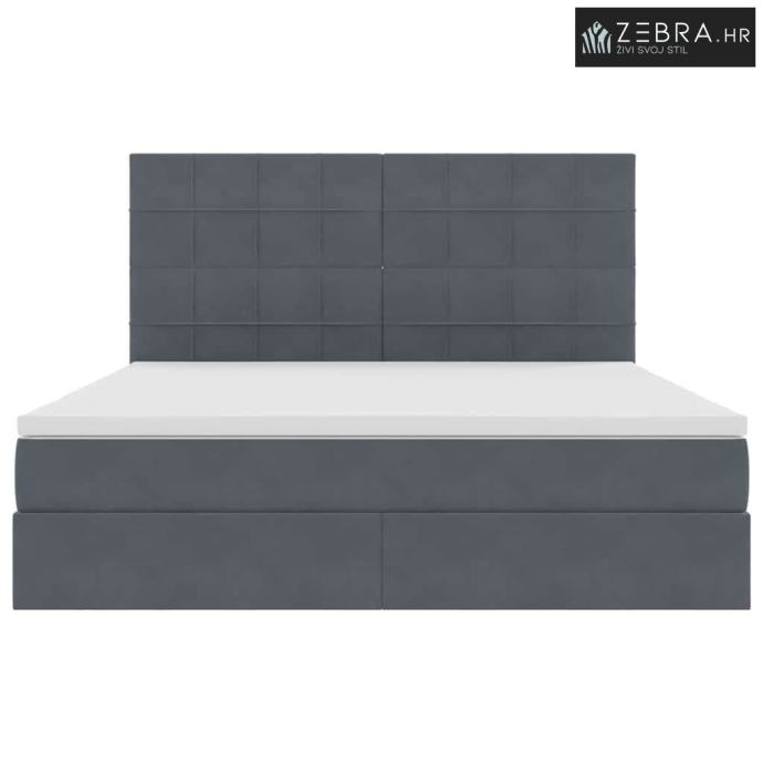 Visokokvalitetni materijali: Izrađen od vrhunskog baršuna za luksuzan osjećaj i dugotrajnu izdržljivost. Metalni okvir pruža čvrstu potporu, osiguravajući stabilnost i dugovječnost. Madrac s pjenom i pocket oprugama nudi udobnost i pouzdanu potporu za neprekidan san. LED poboljšanja: Opremljen modernim LED trakama koje nude ambijentalno osvjetljenje uz mogućnost podešavanja daljinskim upravljačem za prilagodljivo svjetlo. Osvjetljenje je na USB napajanje, lako ga je održavati i štedi energiju. Pametna rješenja za pohranu: Krevet ima hidraulični mehanizam podizanja koji otkriva obilje prostora ispod. Ova opcija maksimizira prostor u sobi i održava stvari organiziranim, savršeno za manje spavaće sobe ili stanove gdje je svaki centimetar važan. Ergonomski dizajn: Madrac je dizajniran s umjerenom čvrstoćom, prilagođava se različitim pozicijama spavanja, pružajući ravnotežnu udobnost. Naslon kombinira stil i potporu, što ga čini idealnim za čitanje ili opuštanje prije spavanja. Suvremeni stil: Elegantni crni okvir s umjetnom kožom na naslonu dodaje dašak elegancije modernom dekoru, stvarajući mirnu i elegantnu spavaću atmosferu. Boja: Tamno siva