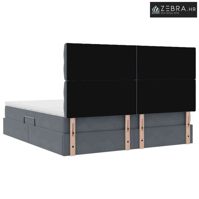 Visokokvalitetni materijali: Izrađen od vrhunskog baršuna za luksuzan osjećaj i dugotrajnu izdržljivost. Metalni okvir pruža čvrstu potporu, osiguravajući stabilnost i dugovječnost. Madrac s pjenom i pocket oprugama nudi udobnost i pouzdanu potporu za neprekidan san. LED poboljšanja: Opremljen modernim LED trakama koje nude ambijentalno osvjetljenje uz mogućnost podešavanja daljinskim upravljačem za prilagodljivo svjetlo. Osvjetljenje je na USB napajanje, lako ga je održavati i štedi energiju. Pametna rješenja za pohranu: Krevet ima hidraulični mehanizam podizanja koji otkriva obilje prostora ispod. Ova opcija maksimizira prostor u sobi i održava stvari organiziranim, savršeno za manje spavaće sobe ili stanove gdje je svaki centimetar važan. Ergonomski dizajn: Madrac je dizajniran s umjerenom čvrstoćom, prilagođava se različitim pozicijama spavanja, pružajući ravnotežnu udobnost. Naslon kombinira stil i potporu, što ga čini idealnim za čitanje ili opuštanje prije spavanja. Suvremeni stil: Elegantni crni okvir s umjetnom kožom na naslonu dodaje dašak elegancije modernom dekoru, stvarajući mirnu i elegantnu spavaću atmosferu. Boja: Tamno siva