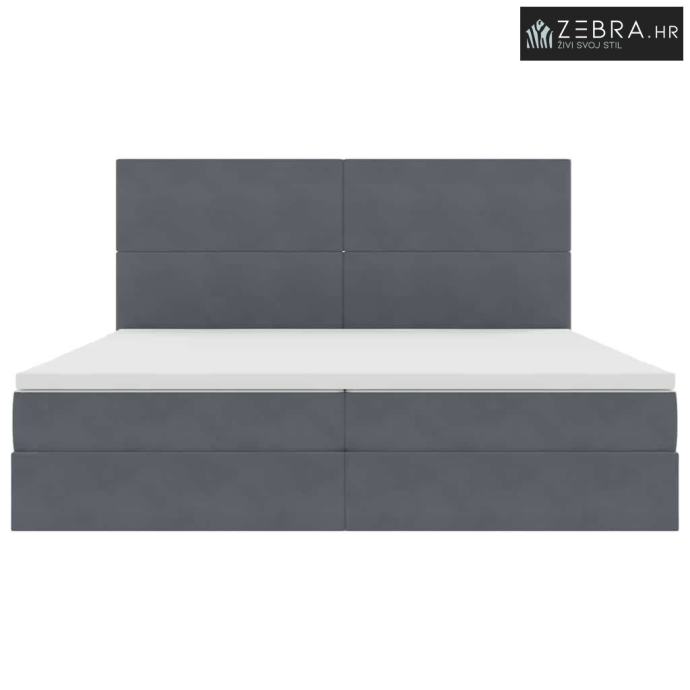 Visokokvalitetni materijali: Izrađen od vrhunskog baršuna za luksuzan osjećaj i dugotrajnu izdržljivost. Metalni okvir pruža čvrstu potporu, osiguravajući stabilnost i dugovječnost. Madrac s pjenom i pocket oprugama nudi udobnost i pouzdanu potporu za neprekidan san. LED poboljšanja: Opremljen modernim LED trakama koje nude ambijentalno osvjetljenje uz mogućnost podešavanja daljinskim upravljačem za prilagodljivo svjetlo. Osvjetljenje je na USB napajanje, lako ga je održavati i štedi energiju. Pametna rješenja za pohranu: Krevet ima hidraulični mehanizam podizanja koji otkriva obilje prostora ispod. Ova opcija maksimizira prostor u sobi i održava stvari organiziranim, savršeno za manje spavaće sobe ili stanove gdje je svaki centimetar važan. Ergonomski dizajn: Madrac je dizajniran s umjerenom čvrstoćom, prilagođava se različitim pozicijama spavanja, pružajući ravnotežnu udobnost. Naslon kombinira stil i potporu, što ga čini idealnim za čitanje ili opuštanje prije spavanja. Suvremeni stil: Elegantni crni okvir s umjetnom kožom na naslonu dodaje dašak elegancije modernom dekoru, stvarajući mirnu i elegantnu spavaću atmosferu. Boja: Tamno siva