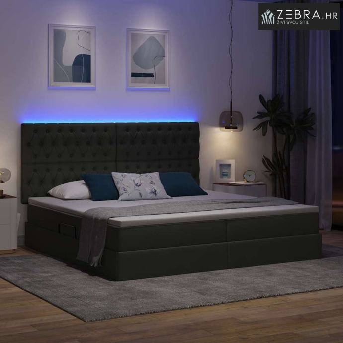 Krevet s prostorom za pohranu s LED-om Tamno siva 200 x 200 cm