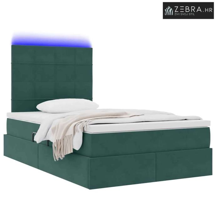 Krevet s prostorom za pohranu s LED-om Tamnozelena 120 x 200 cm