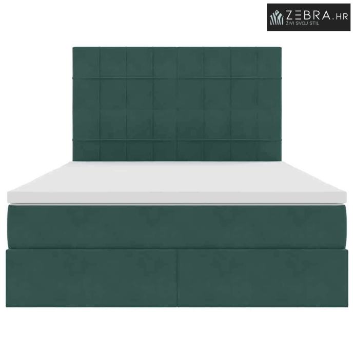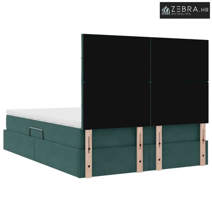 Visokokvalitetni materijali: Izrađen od vrhunskog baršuna za luksuzan osjećaj i dugotrajnu izdržljivost. Metalni okvir pruža čvrstu potporu, osiguravajući stabilnost i dugovječnost. Madrac s pjenom i pocket oprugama nudi udobnost i pouzdanu potporu za neprekidan san. LED poboljšanja: Opremljen modernim LED trakama koje nude ambijentalno osvjetljenje uz mogućnost podešavanja daljinskim upravljačem za prilagodljivo svjetlo. Osvjetljenje je na USB napajanje, lako ga je održavati i štedi energiju. Pametna rješenja za pohranu: Krevet ima hidraulični mehanizam podizanja koji otkriva obilje prostora ispod. Ova opcija maksimizira prostor u sobi i održava stvari organiziranim, savršeno za manje spavaće sobe ili stanove gdje je svaki centimetar važan. Ergonomski dizajn: Madrac je dizajniran s umjerenom čvrstoćom, prilagođava se različitim pozicijama spavanja, pružajući ravnotežnu udobnost. Naslon kombinira stil i potporu, što ga čini idealnim za čitanje ili opuštanje prije spavanja. Suvremeni stil: Elegantni crni okvir s umjetnom kožom na naslonu dodaje dašak elegancije modernom dekoru, stvarajući mirnu i elegantnu spavaću atmosferu. Boja: Tamnozelena