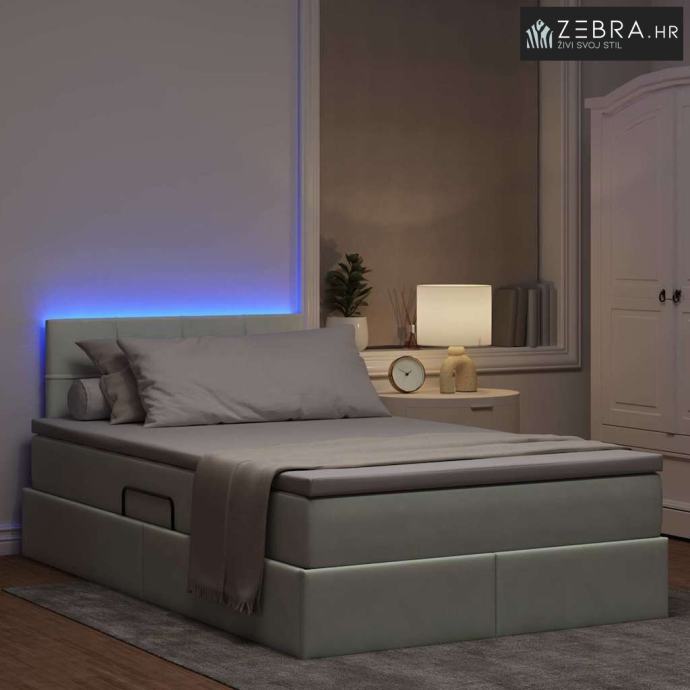 Krevet s prostorom za pohranu s LED-om s madracem Svijetlo siva