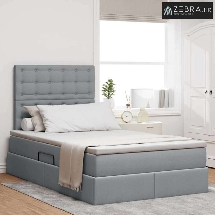 Krevet s prostorom za pohranu s LED-om s madracem Svijetlo siva