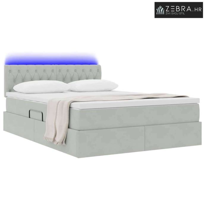 Krevet s prostorom za pohranu s LED-om s madracem Svijetlo siva