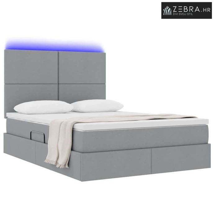 Materijali: Osnova i potporne komponente su od čvrstog metala, što jamči dugotrajnu upotrebu. Madrac i uzglavlje su prekriveni kvalitetnom poliester tkaninom koja daje moderan izgled i lako se održava. Uključeni dijelovi: Krevet dolazi s madracem srednje čvrstoće koji će odgovarati mnogim stilovima spavanja. Uzglavlje, prekriveno mekim poliesterom, nudi dodatnu udobnost. LED rasvjeta donosi posebno ambijentalno iskustvo i čini ga jedinstvenim komadom u spavaćoj sobi. Hidraulična pohrana: Krevet s hidrauličnim mehanizmom omogućuje lak pristup ispod kreveta i nudi mnogo prostora za pohranu. Ova značajka je super važna za one kojima trebaju dodatni prostori za stvari, a istovremeno je i vrlo praktična. Izdržljivi mehanizmi osiguravaju dugotrajnu funkcionalnost. LED rasvjeta: LED trake uz uzglavlje nude prilagodljive RGB opcije rasvjete koje odgovaraju vašem raspoloženju ili interijeru. Povezane su putem USB-a, što je vrlo praktično i štedi energiju dok daje dinamičnu atmosferu. Upute za održavanje: Da bi krevet uvijek izgledao dobro, brišite poliester suhom krpom. Održavajte elektroniku suhom i bez prašine da bi bolje funkcionirala. Minimalno održavanje će čuvati njegov oblik i funkcionalnost godinama.” Boja: Svijetlo siva