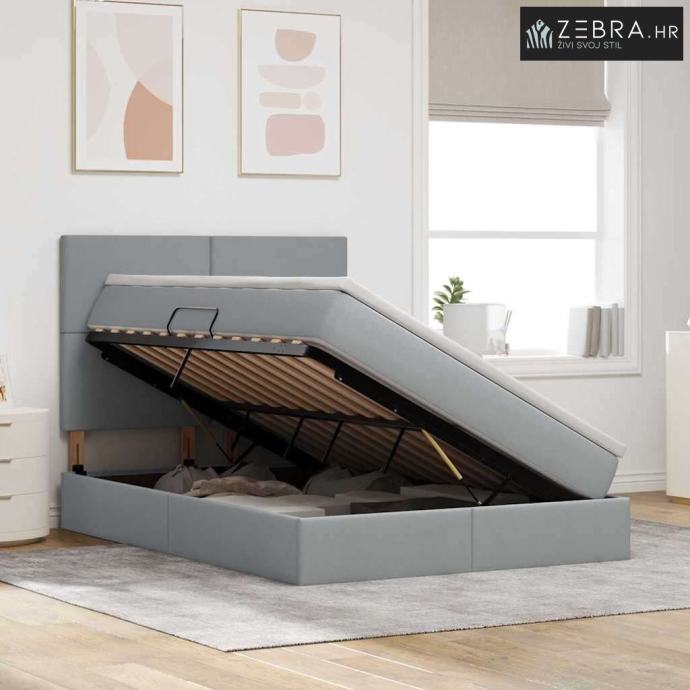 Krevet s prostorom za pohranu s LED-om s madracem Svijetlo siva
