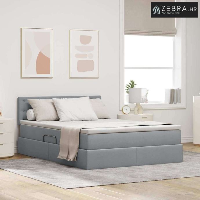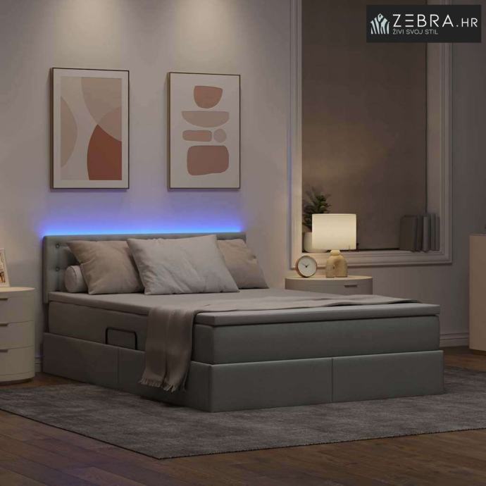 Krevet s prostorom za pohranu s LED-om s madracem Svijetlo siva