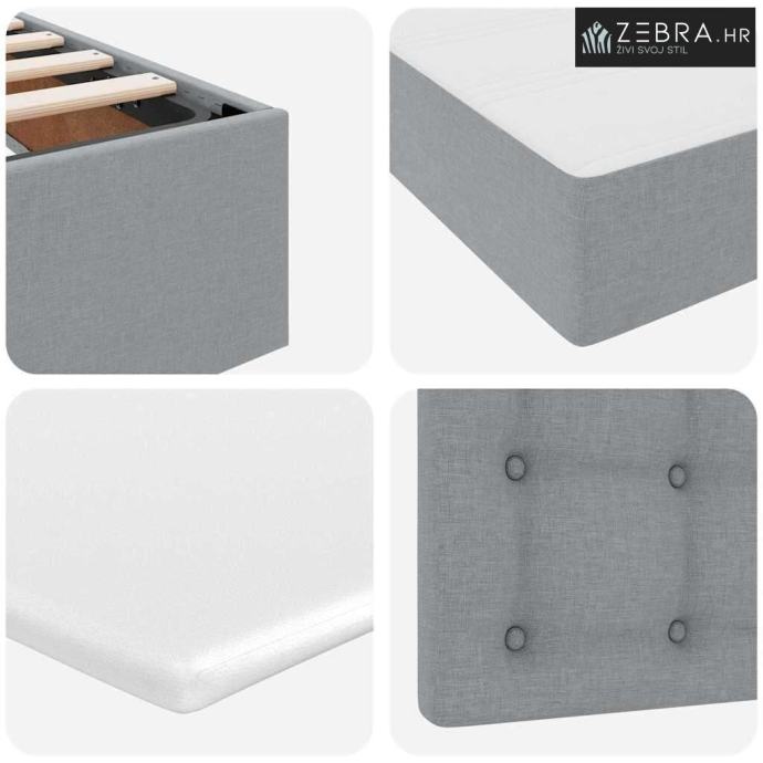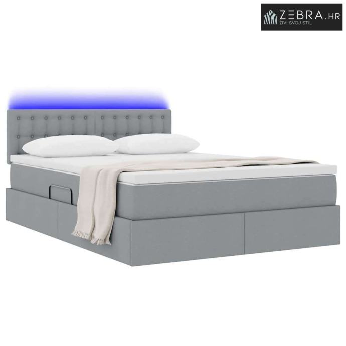 Kvalitetni materijali: Ovaj krevet se ponosi izdržljivim metalnim okvirom i mekanim poliester uzglavljem, pružajući dugotrajan komfor. Ova kombinacija donosi privlačnost i praktičnost, pružajući potporu koja izdrži svakodnevnu upotrebu i odražava moderne, elegantne linije koje odgovaraju svakom gostovanju. Integrirane komponente: Krevet dolazi s prostorom za pohranu ispod, lakim pristupom zahvaljujući hidrauličkom mehanizmu. Pametan dizajn pomaže u organizaciji vaših stvari izvan vida, a RGB LED rasvjeta preko USB priključka dodaje malo personalizacije i ambijentalnog osvjetljenja. Jedinstvene značajke: Ključna karakteristika ovog kreveta je hidraulički mehanizam koji omogućuje jednostavan pristup velikom prostoru ispod madraca. Ovaj funkcionalni pristup donosi svestranost i štedi prostor, savršeno se uklapajući u urbanim životnim prostorima. Svestrana upotreba: Osim što je krevet, ovaj komad se uklapa u razne stilove spavaćih soba, od minimalističkog do modernog chic. Prostor ispod kreveta savršen je za pohranu posteljine, jastuka ili sezonske odjeće - maksimalno iskorištavanje prostora u sobama. Jednostavna njega: Održavanje kreveta je lako - samo obrišite površinu i pazite da LED trake budu suhe. Materijali od poliestera zahtijevaju minimalnu njegu, tako da ostaje praktičan i izdržljiv za svakodnevnu upotrebu. To omogućuje da krevet uvijek izgleda privlačno, što je bitno za brze životne ritmove. Boja: Svijetlo siva