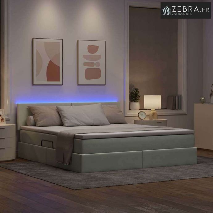 Krevet s prostorom za pohranu s LED-om s madracem Svijetlo siva