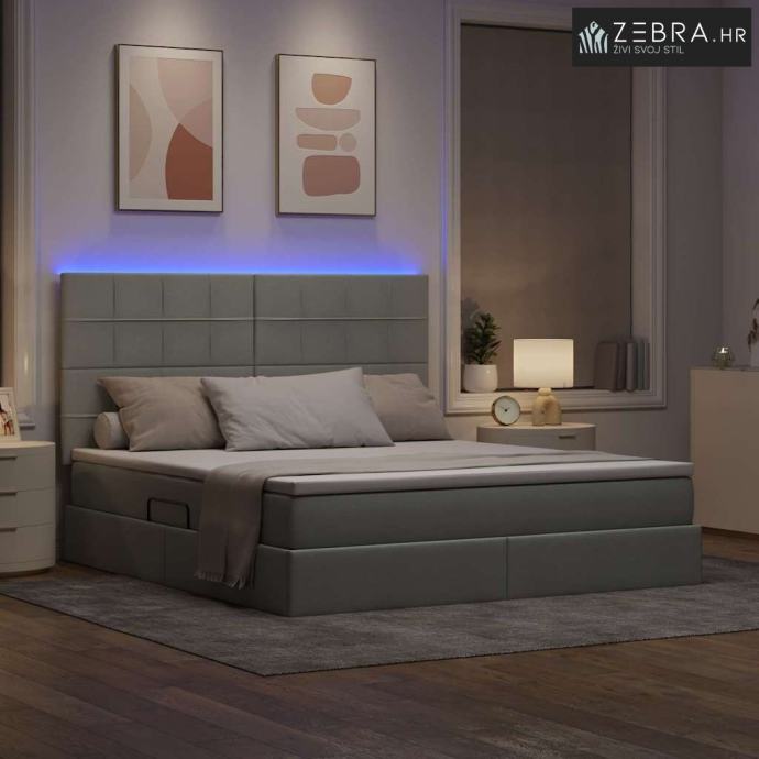 Krevet s prostorom za pohranu s LED-om s madracem Svijetlo siva