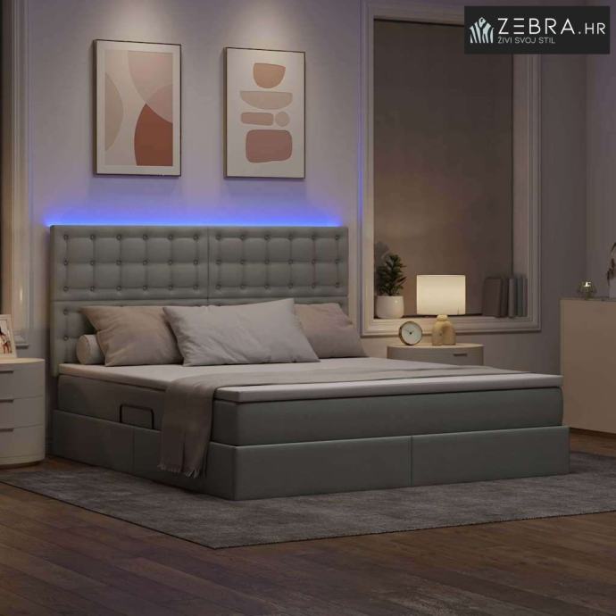 Krevet s prostorom za pohranu s LED-om s madracem Svijetlo siva