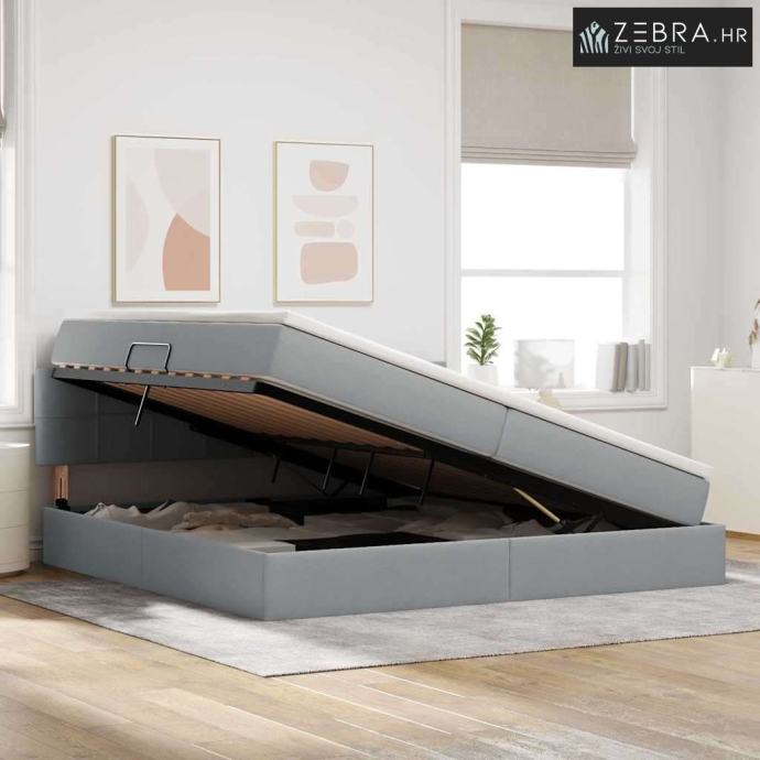 Krevet s prostorom za pohranu s LED-om s madracem Svijetlo siva