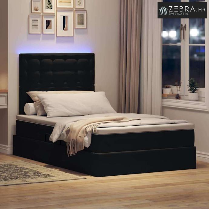 Krevet s prostorom za pohranu s LED-om Crna 120 x 200 cm Baršun