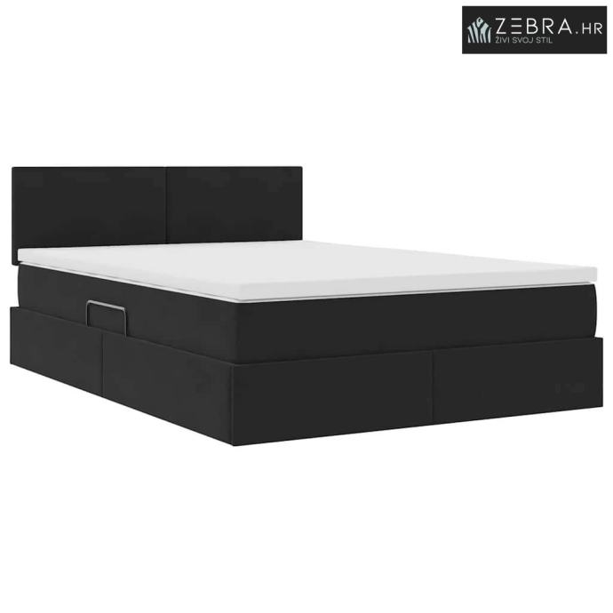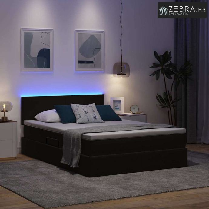 Krevet s prostorom za pohranu s LED-om Crna 140 x 200 cm Baršun