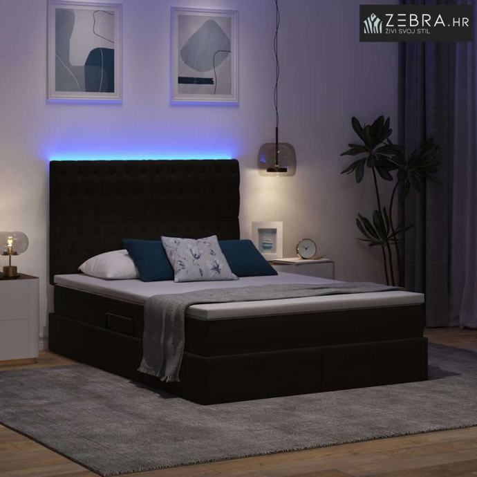 Krevet s prostorom za pohranu s LED-om Crna 140 x 200 cm Baršun