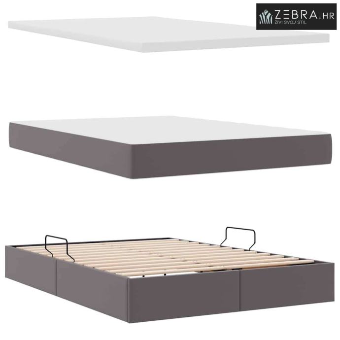 Inovativno rješenje za pohranu Opremljen hidrauličkim mehanizmom, madrac otkriva prostrano mjesto za pohranu ispod. Ova pametna ideja pruža lako dostupno rješenje za organiziranje pokrivača i drugih spavaćih dodataka, idealno za manje prostore.