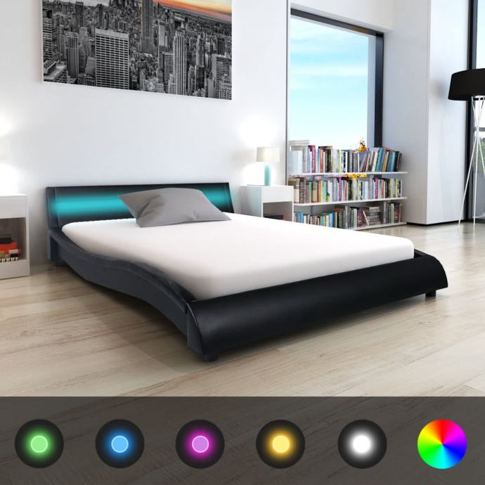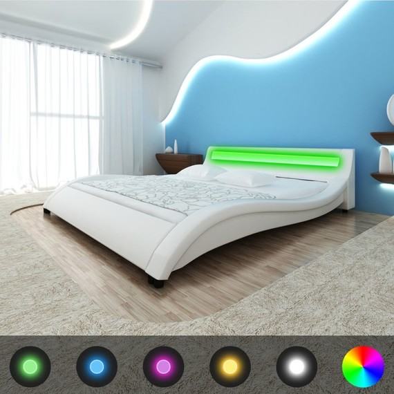 Ovaj čvrsti drveni krevet tapeciran umjetnom kožom i sa LED trakom na uzglavlju,bit će divan dodatak spavaćoj sobi, sobi za goste ili bilo kojoj sobi.Ovaj visoko kvalitetan krevet ima elegantan, moderan dizajn i čvrstu konstrukciju, jer je izrađen od čvrstog i izdržljivog MDF.Otporne letvice od iverice nude potrebnu potporu, ali su također vrlo udobne. Presvučen sjajnom vještačkom kožom, ovaj krevet izgleda primamljivo,lako se čisti i održava.Možete lako prilagoditi snagu svjetline i vrste treperenja boja LED trake ,pomoću neke od 24 tipke daljinskog upravljača i napraviti zadivljujući svjetlosni spektakl sa svjetlosnim efektima.