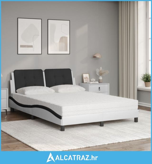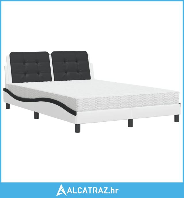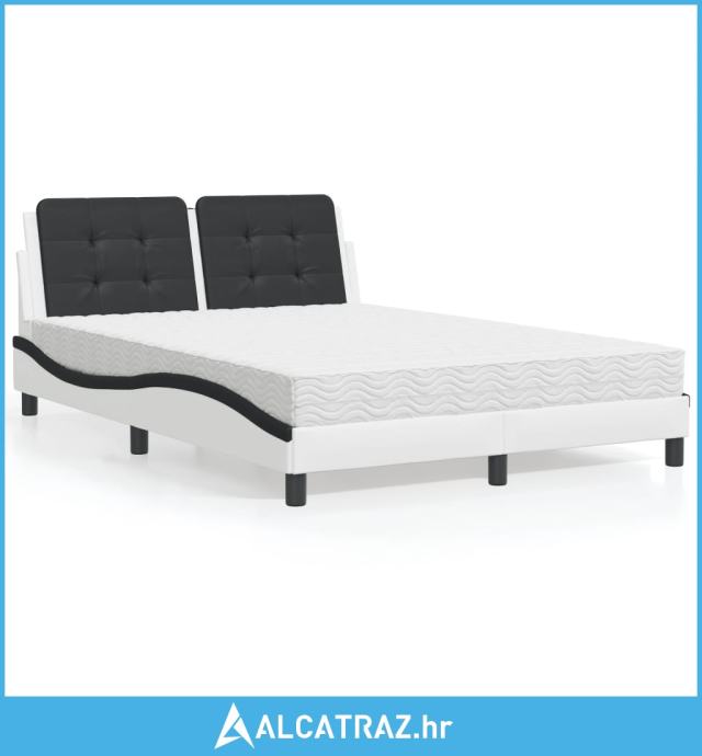 Krevet s madracem bijeli i crni 140 x 200 cm od umjetne kože - NOVO