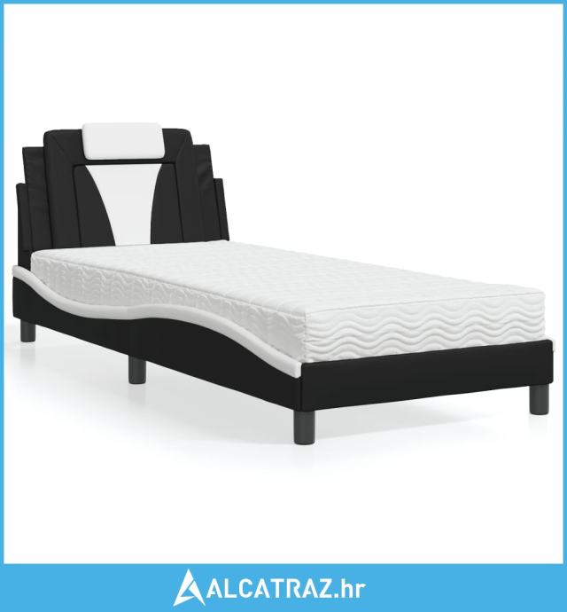 Krevet s madracem crno-bijeli 90 x 190 cm od umjetne kože - NOVO