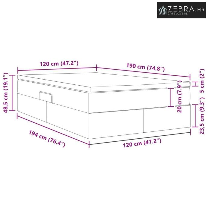 Veličina madraca: Mali dvostruki kratki (120 cm x 190 cm / 47" x 75")