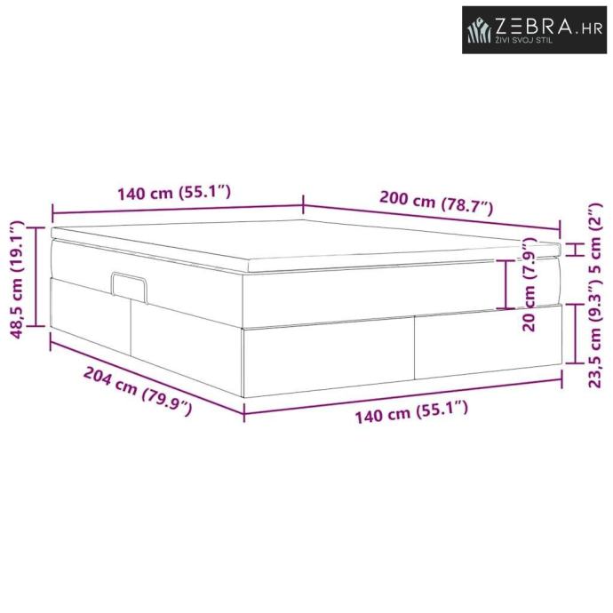Baršunasta obloga: Madrac je obavijen mekim baršunom koji je super ugodan na dodir i dodaje dašak elegancije. Baršun je dugotrajan i donosi udobnost koja se osjeća dobro u svakom trenutku, savršeno se uklapajući u moderni dekor.